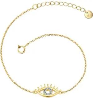Damen Armband aus 925/- Sterling Silber gelbvergoldet 14 Karat mit Zirkonia weiß blau Evil Eye