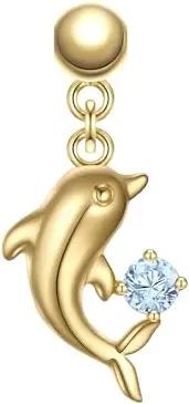 Damen Charm aus 925/- Sterling Silber gelbvergoldet 14 Karat mit Zirkonia blau Delfin-Anhänger