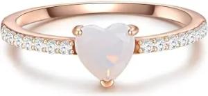 Damen Herz-Ring 925/- Sterling Silber rosévergoldet mit Mondstein (synth.) Zirkonia weiß - Motivring Silberring Solitärring