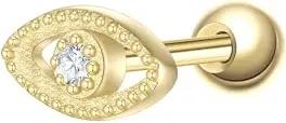 Damen Ohr Piercing aus 925/- Sterling Silber gelbvergoldet 14 Karat mit Zirkonia weiß Allsehendes Auge