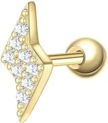 Damen Ohr Piercing aus 925/- Sterling Silber gelbvergoldet 14 Karat mit Zirkonia weiß Blitz
