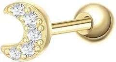Damen Ohr Piercing aus 925/- Sterling Silber gelbvergoldet 14 Karat mit Zirkonia weiß Mond