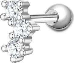 Damen Ohr Piercing aus 925/- Sterling Silber rhodiniert mit Zirkonia weiß