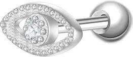 Damen Ohr Piercing aus 925/- Sterling Silber rhodiniert mit Zirkonia weiß Allsehendes Auge