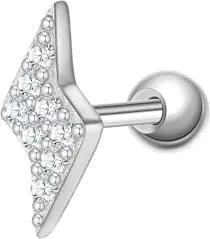 Damen Ohr Piercing aus 925/- Sterling Silber rhodiniert mit Zirkonia weiß Blitz