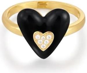 Damen Ring aus 925/- Sterling Silber gelbvergoldet 14 Karat mit Emaille schwarz Zirkonia weiß Herz Silberring
