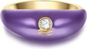Damen Ring aus 925/- Sterling Silber gelbvergoldet mit Emaille lila Zirkonia Sternzeichen Waage