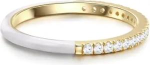 Damen Ring aus 925/- Sterling Silber gelbvergoldet 14 Karat mit Emaille weiß