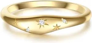 Damen Ring aus 925/- Sterling Silber gelbvergoldet mit Sternen Zirkonia weiß - Motivring Bandring Silberring Gelbgold Stern