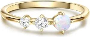 Damen Ring aus 925/- Sterling Silber gelbvergoldet mit Zirkonia und Opal (synth.) weiß - Solitärring Silberring Gelbgold