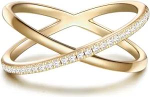 Damen Ring aus 925/- Sterling Silber gelbvergoldet mit Zirkonia weiß - Doppelring Crossover Silberring Gelbgold
