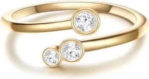 Damen Ring aus 925/- Sterling Silber gelbvergoldet mit Zirkonia weiß - Offener Ring Silberring Gelbgold
