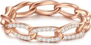 Damen Ring aus 925/- Sterling Silber rosévergoldet mit Zirkonia weiß - Bandring Gelbgold Gliederoptik Silberring Kettenoptik