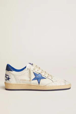 Ball Star Für Damen Aus Weißem Nappaleder Mit Stern Und Fersenpartie Aus Kornblumenblauem Metallic-leder, Frau, Größe: 35