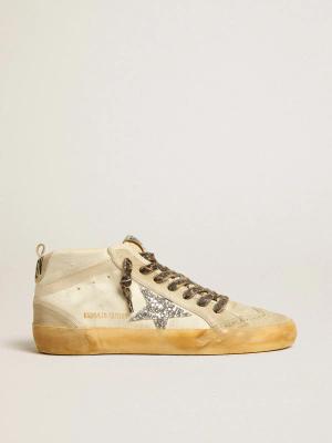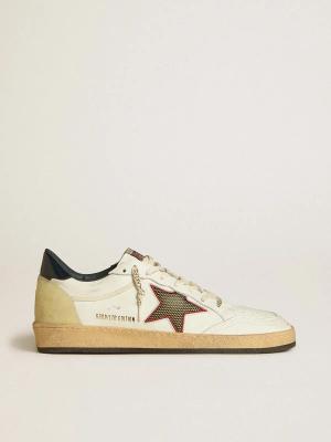 Ball Star 2 Aus Beigefarbenem Rauleder Mit Stern Und Fersenpartie Aus Weißem Leder, Frau, Größe: 35