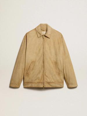 Beigefarbene Lederjacke Mit Reißverschluss, , Größe: 44
