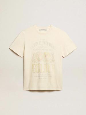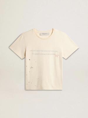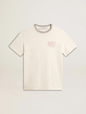 Von Hand Besticktes Damen-t-shirt Aus Baumwolle In Lived-in-white, , Größe: L