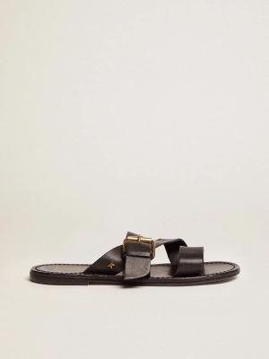 Slide Aus Leder Mit Schwarzem Stern Und Komma Aus Swarovski-kristallen, Frau, Größe: 35
