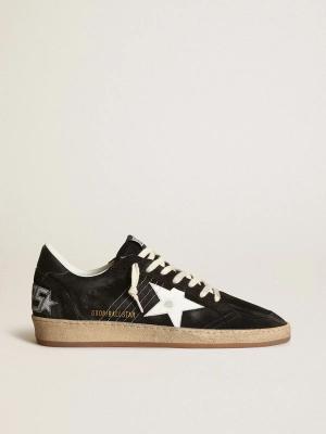Herren Ball Star Aus Schwarzem Rauleder Mit Weißem Lederstern, Mann, Größe: 39