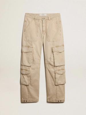 Kakifarbene Herren-cargohose Aus Baumwolle, Mann, Größe: 46