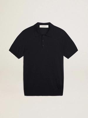 Marineblaues Herren-poloshirt Aus Merinowolle Mit Kurzen Ärmeln, Mann, Größe: S