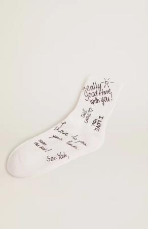 Optisch Weiße Socken Mit Schwarzem Schriftzug, Mann, Größe: M