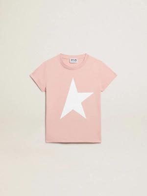 Rosafarbenes Mädchen-t-shirt Mit Logo Und Weißem Maxistern, , Größe: 10