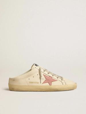 Ball Star Sabot Aus Weißem Nappaleder Mit Altrosafarbenem Lederstern, Frau, Größe: 35