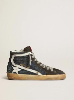 Slide Ltd Aus Azurblauem Rauleder Mit Weißem Stern Und Goldfarbenem Glitzerkomma, Mann, Größe: 39