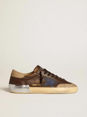 Super-star Aus Leder Mit Blauem Lederstern Und Ferse Aus Beigefarbenem Nubukleder, Mann, Größe: 42