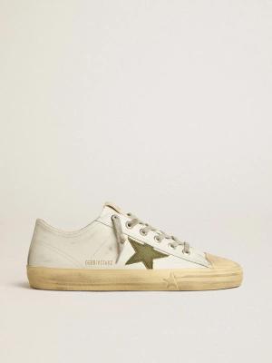 V-star Aus Weißem Leder Mit Grünem Canvasstern, Mann, Größe: 39