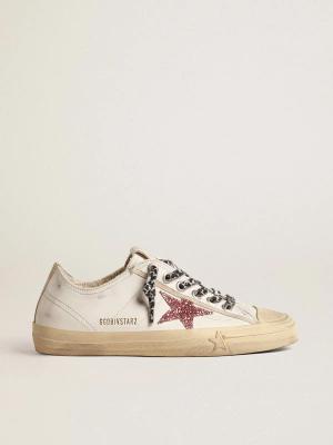 V-star Mit Rosa Glitzerstern Und Metallic-leder An Der Fersenpartie, Frau, Größe: 37