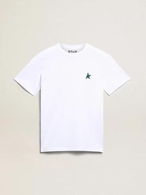 Weißes Jungen-t-shirt Mit Logo Und Stern In Dunkelgrünem Kontrastton, , Größe: 10
