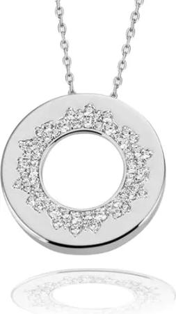 Damen Collier Kreis 925 Sterlingsilber 62 Zirkonia weiß Ankerkette