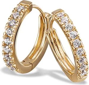 Damen-Creolen Memoire 925 Sterlingsilber vergoldet 18 weiße Zirkonia Ohrringe Schmuck