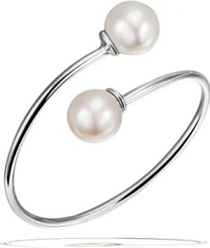 Damen-Gewickelter Jahrestagring Doppelperlen 925 Sterlingsilber 2 Perlen versetzt