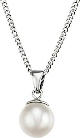 Damen-Kette mit Anhänger 925 Silber rhodiniert Süßwasser-Zuchtperle Weiß 45 cm Schmuck