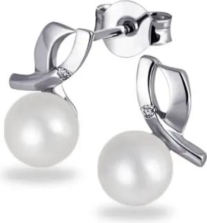 Damen-Ohrstecker Süßwasserperle 375 Weißgold 2 Diamanten 0,03 ct.