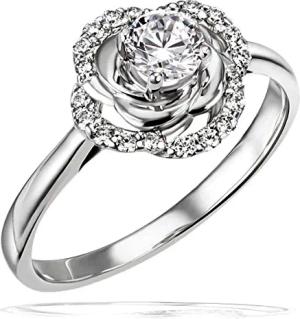 Damen Ring 925 Sterlingsilber Blüte 31 Zirkonia weiß (50)