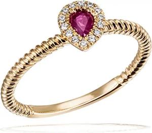 Damenring ruby Tear 375 Gelbgold 1 Rubin facettiert Tropfenform 14 Zirkonia weiß