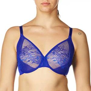 13001 Women's Glossies Lace Electric Blue Floral Underwired Sheer Bra 70C
