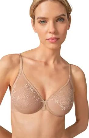 Damen Glossies Lace Sheer Bra Geformter BH, Durchsichtig, Beige (Nude), 70A