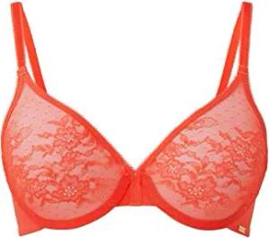 Damen Glossies Lace Sheer Molded Bra Geformter BH, Durchsichtig, Orange (Paprika), 65E