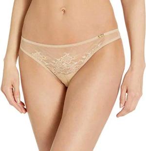 Damen Glossies Lace Thong Stringhöschen, Beige, S