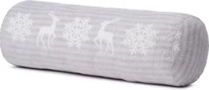 Kissenrolle Scandic, Nackenrolle mit winterlichem Rentier-Design, Dekorative Rolle aus Mikrofaser, 60 x 20 cm - Creme