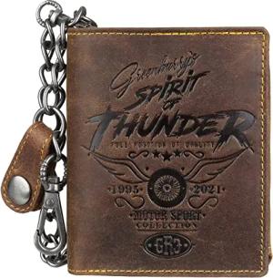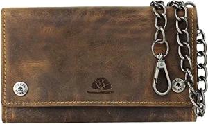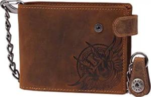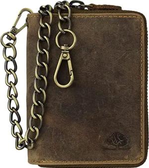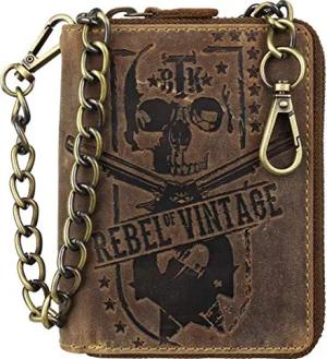 Vintage RFID Leder Reißverschluss Geldbörse Portemonnaie Bikerbörse mit Kette BV-821A-25