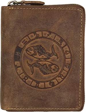 Vintage Sternzeichen Leder Geldbörse 10 cm braun Standardgröße Geldbörse Hochformat