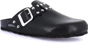 GRUNLAND SARA CB0790 Schwarze Damen Hausschuhe Ledersohle Schnalle geschlossene Spitze Nieten 38