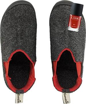 Brumby Boots Charcoal-RED mit Nagellack RED| Hausschuhe Damen/Winter | Pantoffeln | Filzpantoffeln | rutschfeste Sohle | Puschen | Schuhgröße/Größe 36-46