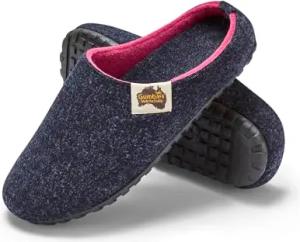 Hausschuhe aus recycelten Materialien - rutschfeste & stabile Sohle, herausnehmbare Einlegesohle, wärmehaltend, für drinnen & draußen geeignet - Navy Pink, 40